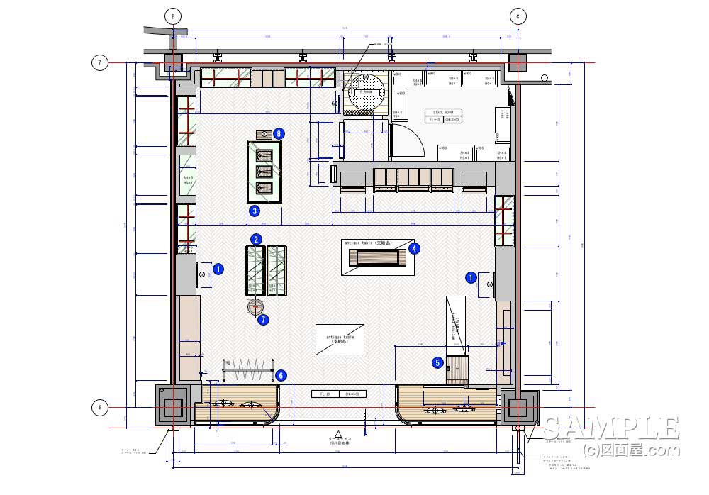 決して難しい什器はありません。以下平面図に什器指示を入れてますので、目を通してください。